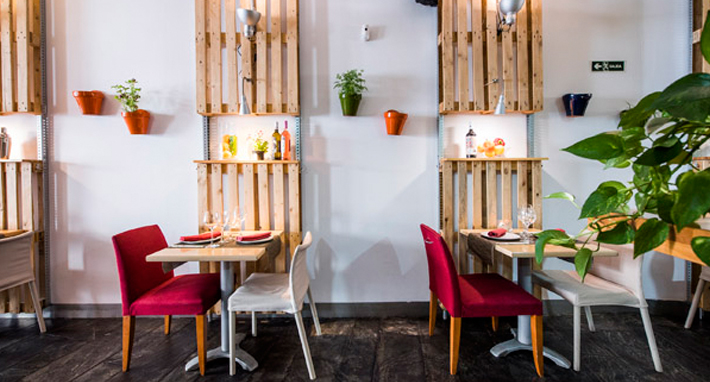 En el luminoso y agradable local predomina la madera, presente en los palets con plantas, frutas y lámparas que decoran las paredes, los colores claros y algunos detalles en rojo. Al fondo de la sala hay una barra perfecta para abrir boca con un pisco sour o un Ron Cuba libre preparado en mesa muy apetecible antes o después de comer.