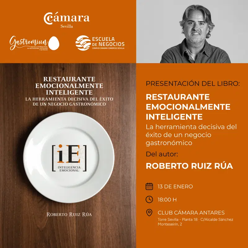 La jornada no termina en las aulas. A las 18:00 h, el Club Cámara Antares (en la planta 18 de la Torre Sevilla) abrirá sus puertas al público para la presentación oficial de “Restaurante emocionalmente inteligente”.
